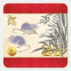 Pintura original de RB con dos ratas y bambúes sobre fondo de papel vintage (imagen) + ideograma dorado de Rat sobre un círculo dorado +gran 2020. Diseño en pegatina cuadrado con diseño decorativo rojo + líneas doradas. Tarjeta de felicitación, invitación, productos artesanales y más... Perfecto para un eterno Año Nuevo Chino de la Rata 2020.