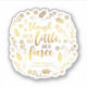 Pegatina con la cita del sueño de William Shakespeare de una noche de verano "Aunque sea pequeña, es feroz" rodeada de flores y hojas en falso Relieve metalizado de oro . *Tenga en cuenta que la marca de agua Zazzle que aparece en la vista previa del zoom NO aparecerá en el producto impreso final. © Bookish y WonMart
