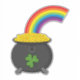 Un ilustracion personalizado de la olla de oro al final del arco iris con hoja verde de shamrock para la celebración del Día de San Patricio. Este caldero lleno de diseño de monedas de oro es una idea de regalo para los amantes de la temática irlandesa y del tesoro irlandés. ¡Coger el leprechaun y conseguir su oro!