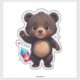Pegatina de vinilo lindo de un oso bebé saludando.