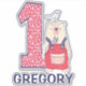Pegatinas de primer cumpleaños de oso lindo con nombre. Personalizar el nombre. Celebra la fiesta de primer cumpleaños de tu pequeña con estos pegatinas personalizados. Pequeño oso oso en el ilustracion de los dunares, con el número uno.