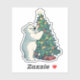 Un lindo oso polar personalizado decora un árbol de Navidad con luces brillantes, una estrella brillante encima, y regalos debajo. Una pegatina navideña divertida para celebrar la temporada.