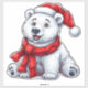 Un oso polar adorable con sombrero rojo de Santa y bufanda, que irradia alegría en un ambiente festivo. Perfecto para temas de Navidad, celebraciones y momentos entrañables para la temporada navideña.
