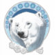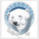 Retrato de un oso polar dibujado al estilo Art Nouveau. Los copos de nieve por todo el oso polar contra los tonos azules.