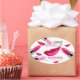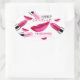 Diseño artístico de maquillaje con labios brillantes rosados y labios femeninos ruby rosados sobre fondo blanco. Este elegante pegatina es perfecto para esteticistas, cosmetólogos, salones de belleza y otras profesiones similares.