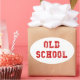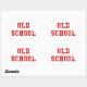 Pegatina oval de la vieja escuela con texto rojo en un efecto desgastado! Oldskool, antiguo skool estilo retro estilo de los 80.