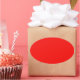 Pegatina Oval Rojo. Fondo de color sólido listo para añadir sus propias imágenes y texto.