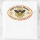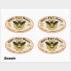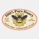 Imagen de la Reina Bee en el medallón central de un pegatina colorido, rodeado por un patrón de fondo geométrico. Personalice el texto con el tipo de miel, nombre comercial, dirección y peso neto de su producto. Estos pegatinas se adaptan a grandes jarrones de albañilería, redondos y hexagonales.