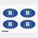 CUATRO Pegatinas belgas "B" de la Unión Europea de la bandera Oval. Código internacional de matriculación de vehículos de Bélgica con bandera de la UE en segundo plano