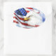 La imagen de la orgullosa cabeza de un águila es superpuesta sobre la bandera estadounidense ondeando en el cielo. Este diseño patriótico es una imagen inspiradora para todos los que aman a Estados Unidos y sus símbolos de libertad.