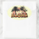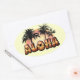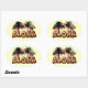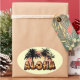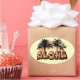 "ALOHA" en colores atareados, combinado con siluetas de palmeras.