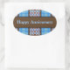 Pegatina Ovalada Aniversario feliz de Turquoise Brown