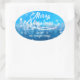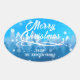 Pegatina Ovalada Azul Blanca Nieve Bosque Pacífico Feliz Navidad