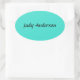 Pegatina Ovalada Azul turquesa Profesional Moderno Nombre elegante