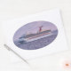 Bajo un cielo nublado, un crucero cruza lentamente hacia el puerto de Cozumel. Cuando amaneció, la luz de la mañana parecía proyectar un matiz violáceo sobre el mar, el cielo y el barco.