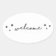Pegatina Ovalada Bienvenida caligrafía en blanco y negro. Moderno s