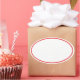 Este pegatina blanco tiene un borde rojo brillante. El pegatina y el borde están en forma de oval.