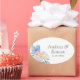 Pegatina Ovalada Boda floral azul y rosa turbio