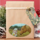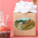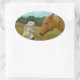 Pegatina Ovalada Caballo amarillo rubio y conejo de Pascua