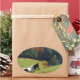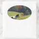 Pegatina Ovalada Caballo blanco y marrón, estanque otoñal