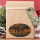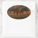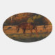 Pegatina Ovalada Caballo rojo marrón, bosque otoñal.