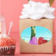 Pegatina Ovalada Caballo rubio y corazón rosado y rojo