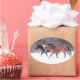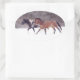 Pegatina Ovalada Caballos de nieve en invierno en granero