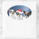 Pegatina Ovalada Cachorros de Chihuahua con Navidades de Santa Hat