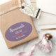 Moderno pegatina "casero con amor" con un tipo de letra blanca sobre un fondo morado adornado con un lindo corazón rojo. Texto personalizado.