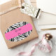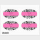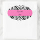 Pegatina Ovalada Cebra blanca y negra con rosa caliente
