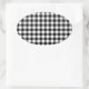 Pegatina Ovalada Cheques de Gingham en blanco y negro