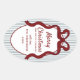 Classic Red Blue Stripes & Bow Frame Christmas Oval Sticker.