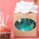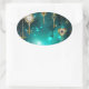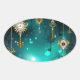 Pegatina Ovalada Claves de esqueleto antiguas sobre fondo verde