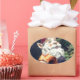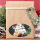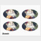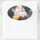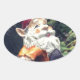 Pegatina Ovalada Colgando con el gnomo en el jardín.