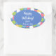 Pegatina Ovalada Colorful Happy Birthday from Name Blue