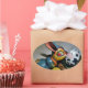 Pegatina Ovalada Conejo de juguetes y huevo de vaca