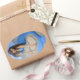 Una sirena romántica de cola azul dibuja un corazón en la arena de la playa. Reproducido a partir de la pintura original de Sue Halstenberg.