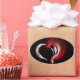 Corazón metalizado con un escudo rojo de fondo negro. Listo para ser personalizado con tu texto.