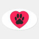 Pegatina Ovalada Corazón Rojo Con Papas De Perro Impresión