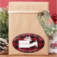 Los amantes del perro disfrutarán de este curioso y lúdico perro de Dachshund mirando dentro de una caja de regalo de vacaciones, pegatina de vacaciones de silueta con mantas de búfalo y texto editable.