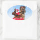 Pegatina Ovalada Cute Yorkshire Terrier Merry Christmas