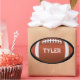 Personalice este diseño de fútbol con su nombre en blanco sobre fondo negro.