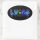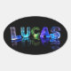 Pegatina Ovalada El nombre Lucas en luces 3D (fotografía)