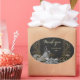 Elegancia en plata y negro. Esta imagen presenta un ilustracion en blanco y negro de un marco boda con intrincados adornos de oro y plata. El marco está decorado con motivos florales ornamentales y una arcada central. Una novia en un vestido de flores, sosteniendo un ramo de flores, se para dentro del marco, mirando lejos del espectador. El fondo es una superficie negra texturada que crea una atmósfera dramática y elegante.