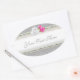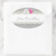 Pegatina Ovalada Elegante Damasco plateado y rosa rosado