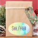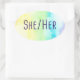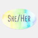 Pegatina Ovalada Ella Sus Pronouns (acuarela arcoiris)