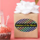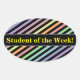 Este diseño pegatina presenta un patrón de líneas (o rayas) coloridas en varios colores pastel, con líneas negras entre ellas. También muestra el mensaje "¡Estudiante de la semana!" en texto amarillo dentro de una banda de color oscuro. Tal vez podría ser usado por un profesor, educador o tutor para reconocer y elogiar a un estudiante que ha tenido una muy buena semana. [~Z0000052]