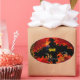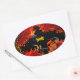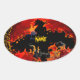 Pegatina Ovalada Espeluznante murciélago en el fuego
