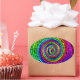 Espiral de puntos arcoiris. Los colores principales son rosa, verde limón, agua, azul, rojo, amarillo, naranja, morado y negro.