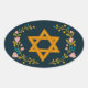 Pegatina Ovalada Estrella de David Floral Judío Personalizado Dibuj